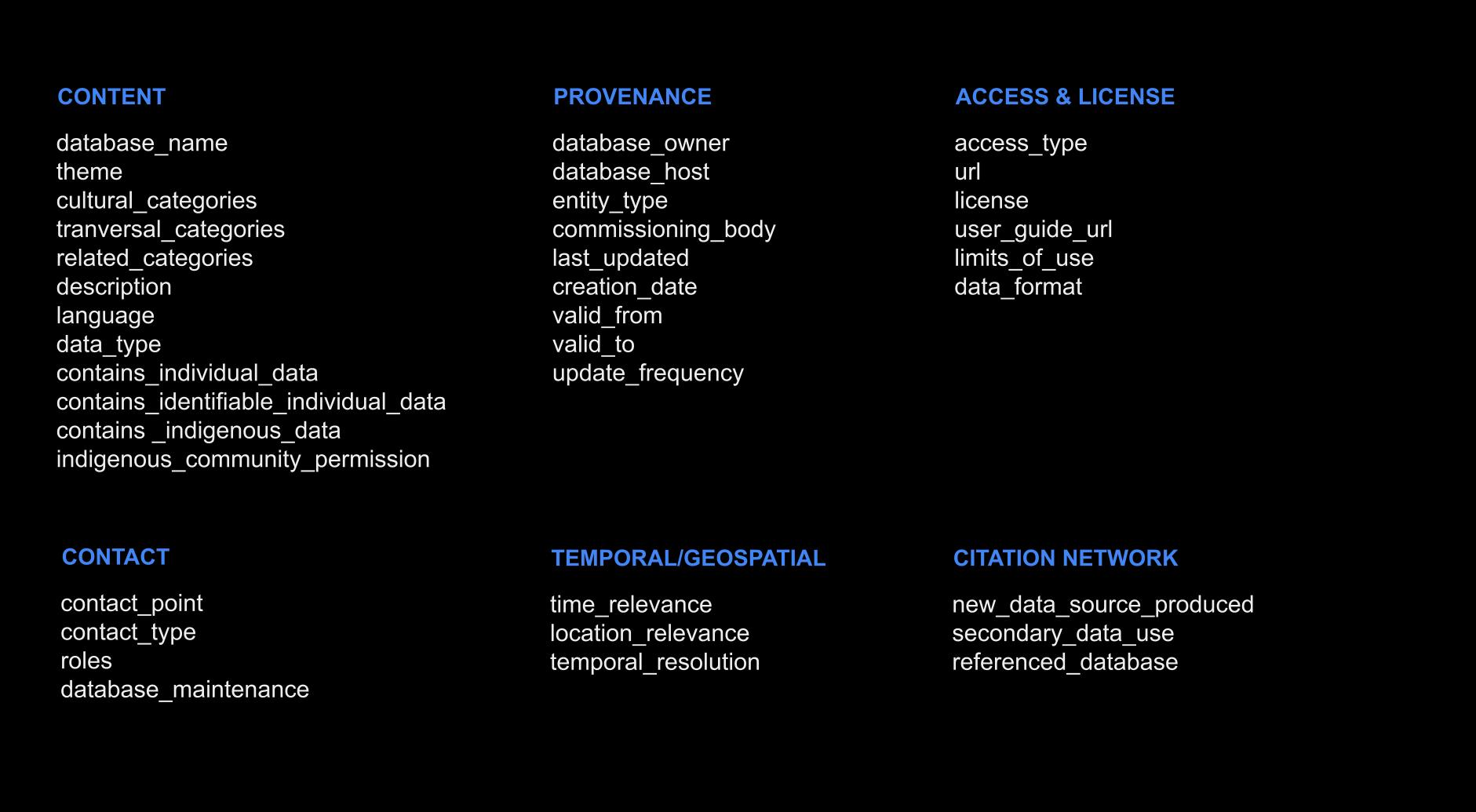 The first iteration of the product was not a digital interface but a structured metadata framework. Using the School of Cities Metadata Maturity paper by our colleagues in University of Toronto as the foundation, we developed a standardized schema defining: