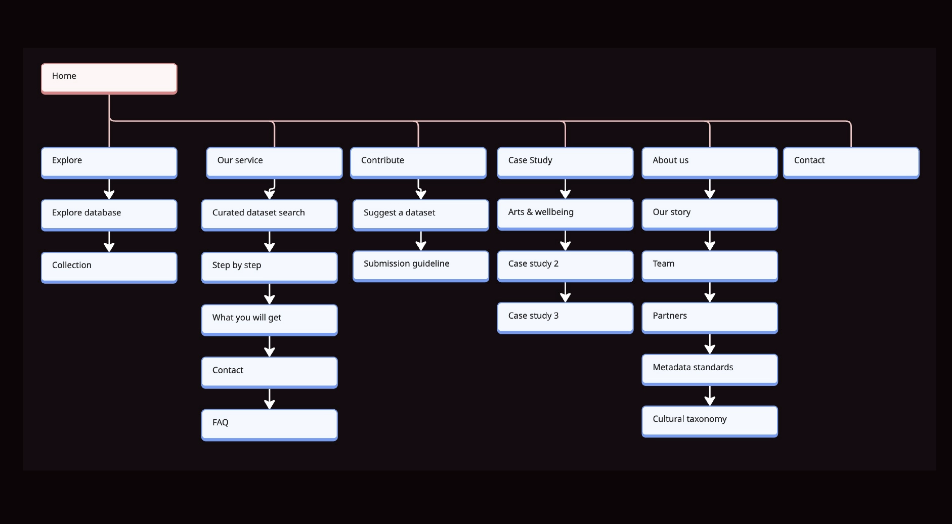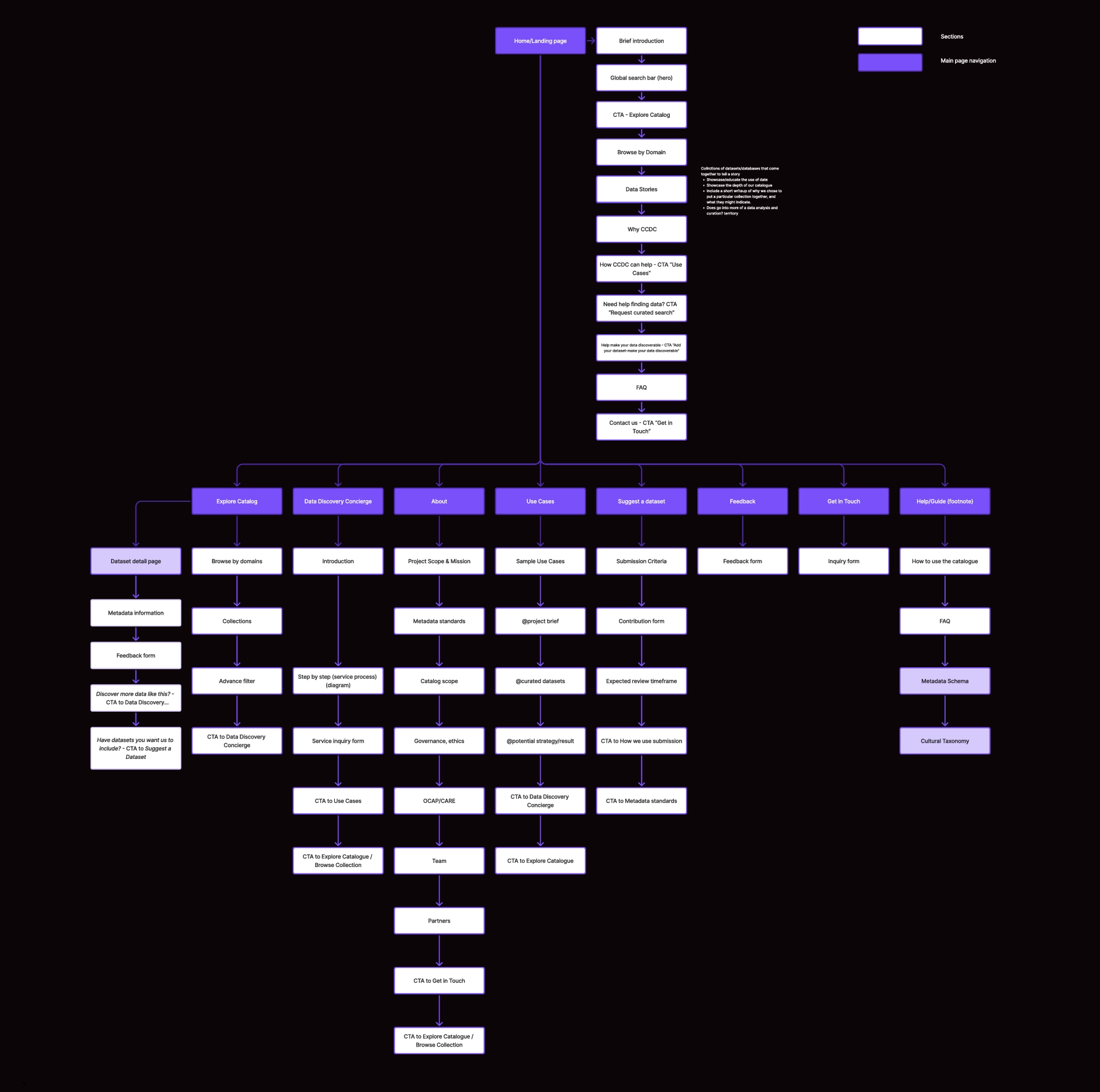 This became the bridge between the research inventory work and experience design decisions, shaping how datasets are represented, filtered, and understood in the catalogue.