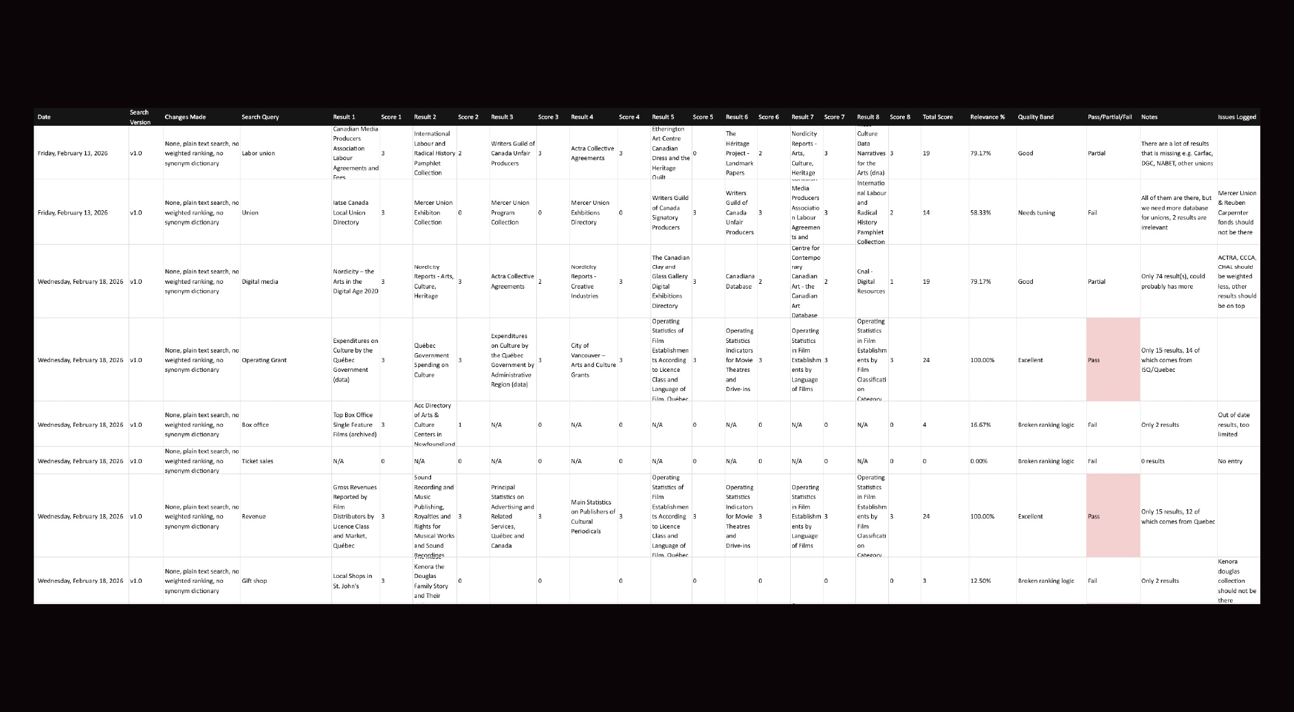 Before interface design, we conducted qualitative research across comparable data discovery platforms to evaluate information hierarchy, search behavior, and metadata prioritization patterns. These findings were combined with insights from interest holders interviews, including researchers, arts administrators, and policymakers, and sector expertise from our Principal Investigator, Sara Diamond.
